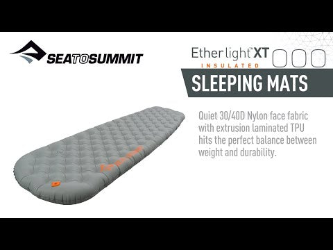 Die Ether Light XT Insulated kombiniert ein leichtes 30/40D-Nylon-Gewebe, Exkin Platinum und THERMOLITE-Isolation mit einer Air Sprung Cell Konstruktion, um eine 10 cm dicke und isolierte Matte mit unglaublich geringem Gewicht zu schaffen.